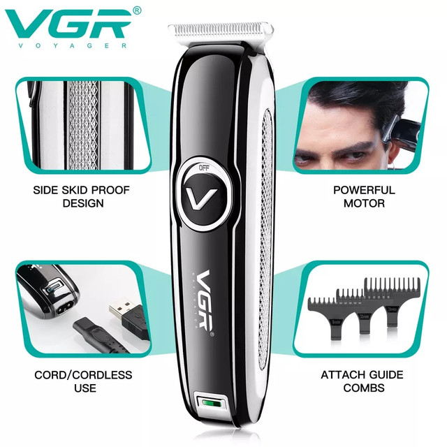 Тример VGR V-168 ― перезаряджається, портативний, водонепроникний і призначений для видалення небажаного волосся на обличчі, а також можна використовувати для окантування потилиці, скронь і бороди. Спеціальна конструкція тримера не дозволяє лезам торкатися шкіри. Гоління гоління не викликає роздратування. Прилад легко чистити за допомогою спеціальної щіточки.
