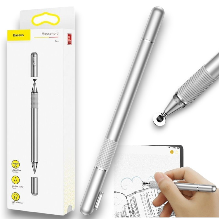 -43%Універсальний стилус Baseus Golden Cudgel ACPCL-0S 2в1 для iOS/Android/Windows з ручкою для письма (сріблястий)